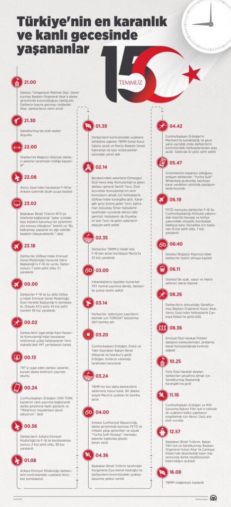 İşte saat saat 15 Temmuz’da yaşananlar;