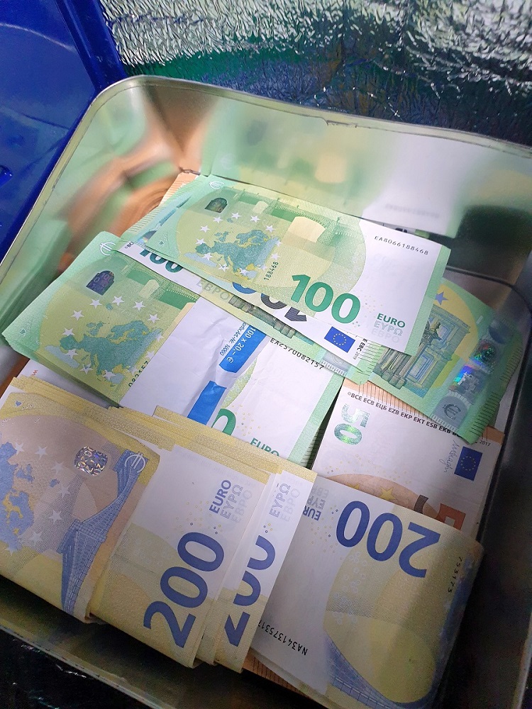 Bunun üzerine ilk olarak sürücünün cüzdanına bakıldı. Cüzdandan tam 22 bin Euro çıktı. Durumdan kuşkulanan memurlar aramalarını sürdürdüler ve aracın her yerine bakmaya karar verdiler. Kısa süre sonra bir poşetin içine gizlenmiş on binlerce Euro daha bulundu. Yetkililer, ele geçen toplam paranın 100 bin Euro’yu geçtiğini açıkladılar. Eşiyle birlikte seyahat eden araç sahibi hakkında yasal işlem başlatıldı.