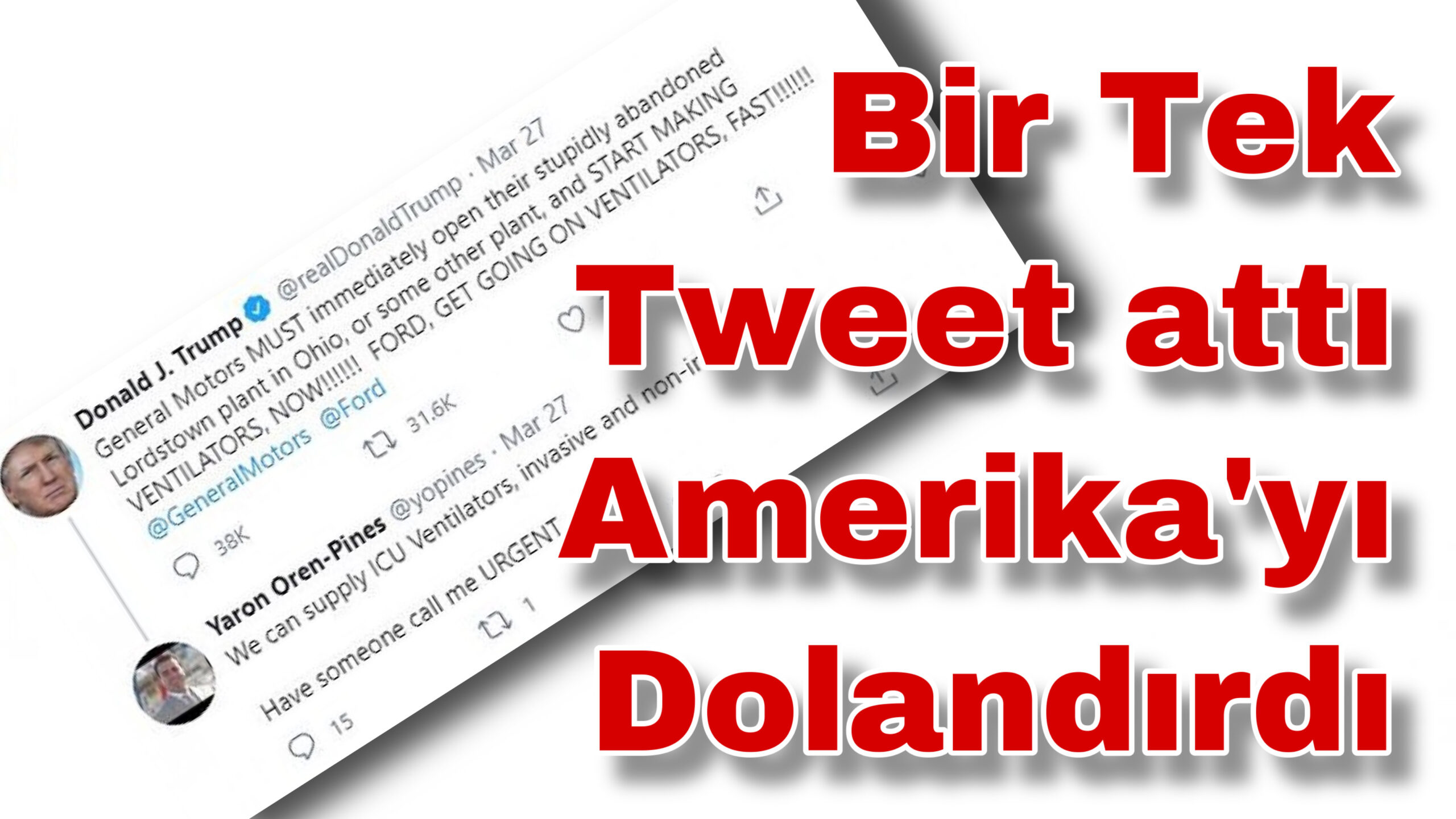 Başkan Trump’ın Ford ve General Motors’u etiketleyerek attığı, “Ventilatör yapmaya başlayın, hemen” tweetine, Yaron Oren-Pines isimli bir mühendis, “Yoğun bakım ünitesi için ventilatör üretebiliriz. Birisi acilen beni arasın” cevabını vermişti.