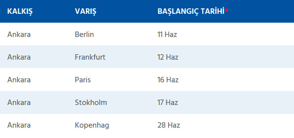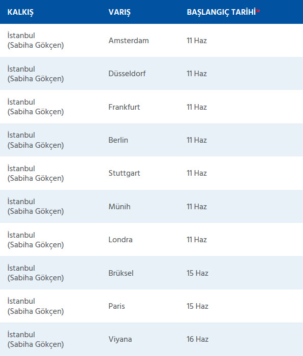 Seyahat engellerinin kalkması, otoritelerin vereceği izinler doğrultusunda yeniden planlanan güncel sefer bilgilerine alttaki tablodan ulaşabilirsiniz.