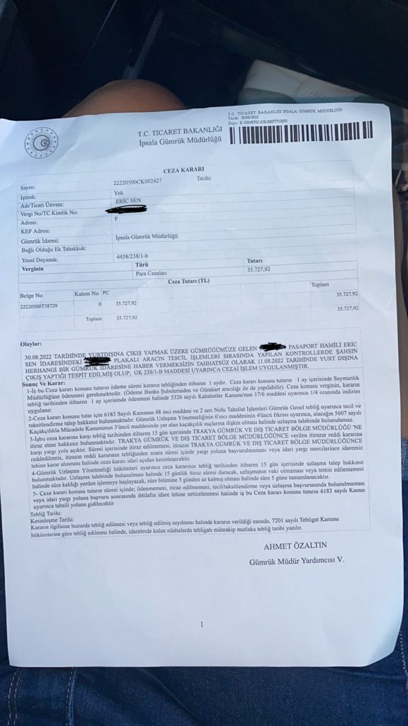 Turizm Avrupa’nın haberine göre Selda Şen adlı vatandaşımız şunları aktardı: “Selamlar ben de başımıza gelen cezayı anlatıp gurbetçilerimizi uyarmak istiyorum. Biz de bu sabah İpsala’dan çıkış yaparken durun dediler. Siz Artvin’den Batum’a giriş yapmışsınız. “evet” dedik ama biz otobüs turuyla gittik, arabamız evimizdeydi. Batum’ a giriş yaparken gümrüğe bildirmemiz gerekiyormuş. Tur rehberi bizi bilgilendirmemişti. Tabi o da bu bilgiye sahip mi? diye sormak gerekir. Anlayacağınız 35.727 TL ceza kestiler. Gerekçe de 4458/238/1-b yasal dayanak. Bu kanuna göre para cezası ödedik. Yani bu kara deniz turu bize çok pahalıya patladı. Hemen ödendiği için yüzde 10 indirim yaparak 26.795,94TL’ye düşürdüler. Banka da yurt dışında olduğu için para kesintisiyle birlikte 28.135,74TL ödedik.”