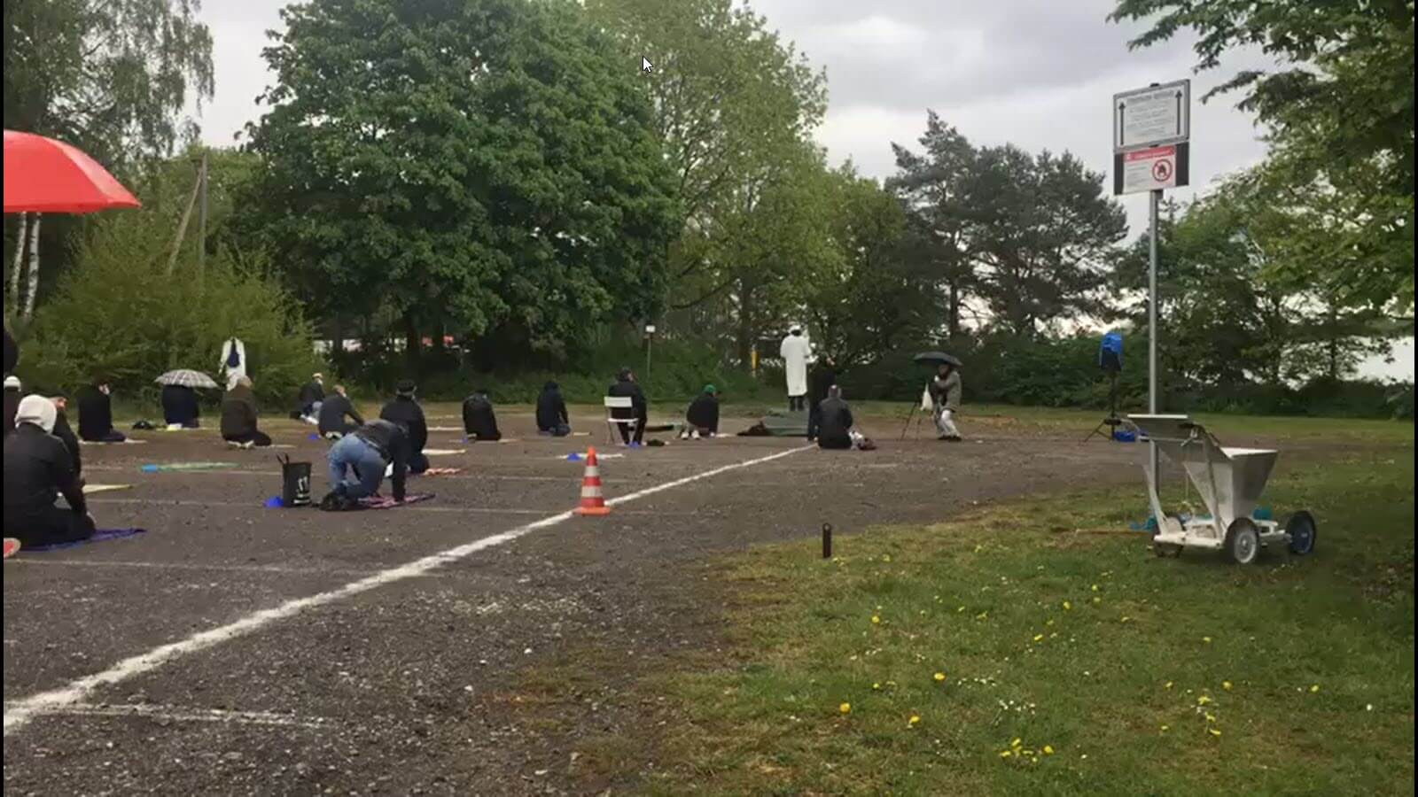 Durumu öğrenenler yanlarında getirdikleri karton ve seccadelerle boş meydanda cuma namazı kıldı. Başbakan Angela Merkelin 30 Nisan Perşembe günü yaptığı açıklamada, sosyal mesafe ve getirilen hijyen kurallarına uymak şartıyla camilerin 1 Mayıs itibariyle açılabileceğini ifade etmişti.