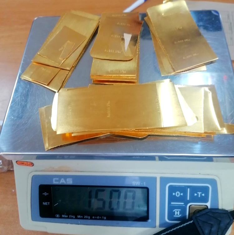Paketler açıldığında üzerlerinde “Au 999.9” yazan altın levhalar olduğu belirlendi.