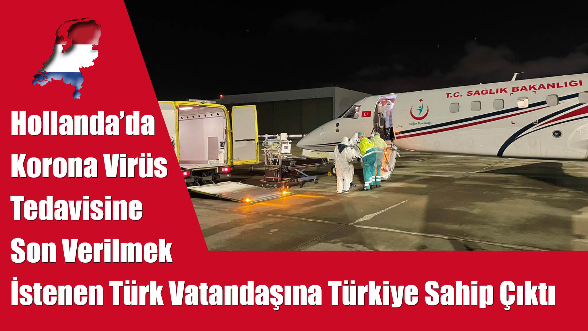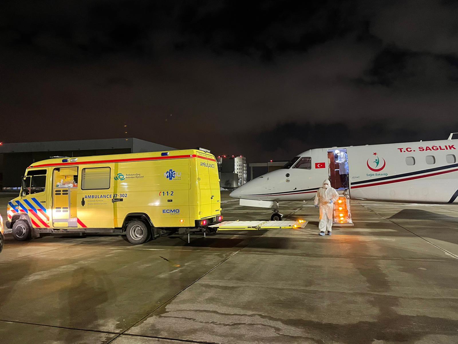 Hollanda’da korona virüs tedavisine son verilmek istenen Türk vatandaşı Selahattin Kandaz, tedavisine devam edilmek üzere Sağlık Bakanlığına ait ambulans uçakla Türkiye’ye gönderildi.