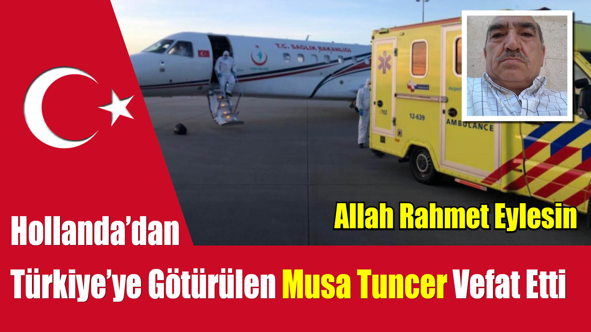 Hollanda’da Aralık 2020’den beri korona virüsten tedavi gören ve dün akşam Hollanda’dan Türkiye Cumhuriyeti Sağlık Bakanlığı’na ait ambulans uçakla Türkiye’ye nakli gerçekleştirilen Musa Tuncer hayatını kaybetti.