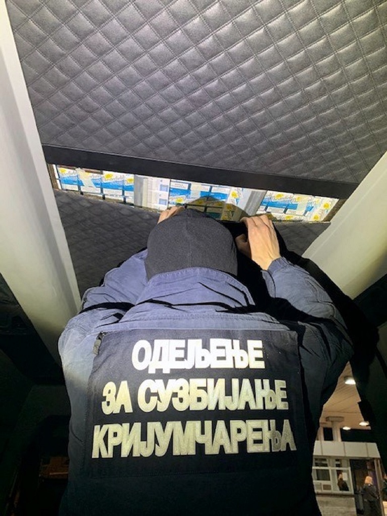 Gümrük köpeği Nero’nun kusursuz koku duyusu ve mobil X-Ray cihazı, gümrük memurlarının 23 Aralık 2020’de Kelebija-Tompa sınırında polisle iş birliği içinde bir minibüsün çatısına gizlenmiş 2.500 paketten fazla sigara kaçakçılığını önledi.