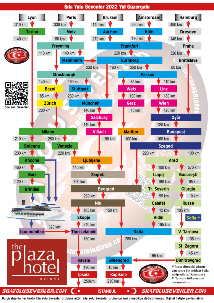 - Almanya -> Çekya -> Slovakya-> Macaristan -> Sırbistan -> Bulgaristan -> Türkiye