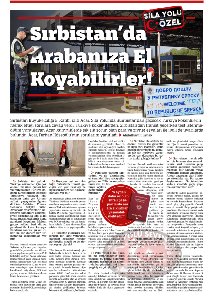 - Son olarak merak edilen bir hususu size sormak isteriz. Yurt dışından gelip sınırdan geçerken pasaport mecburi mi? Çünkü misal Avrupa’da Fransız vatandaşı, Alman vatandaşı olan Türkiye kökenliler var. Bu vatandaşlarımızın Sırbistan’dan sadece kimlikle geçiş yapmaları mümkün mü?