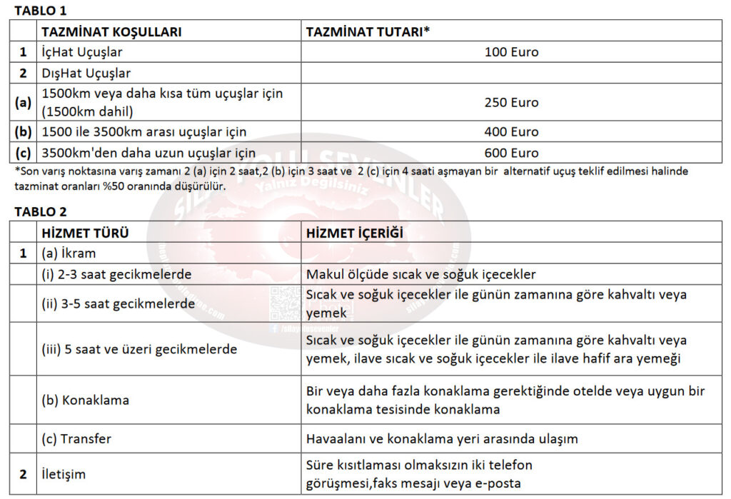 - (a) Yolcularımız TABLO 1’de belirtilen miktarlarda tazminata hak kazanacaktır.