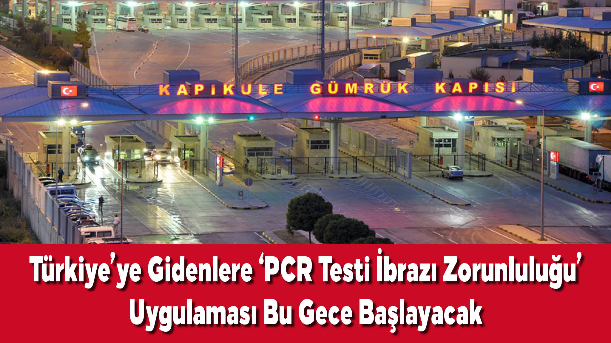 Türkiye’ye Gidenlere “PCR testi ibrazı zorunluluğu” uygulaması tüm hudut kapılarında bu gece başlayacak.