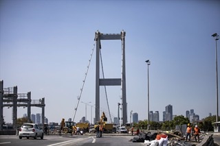 Ekipler, 15 Temmuz Şehitler Köprüsü’nün Anadolu’dan Avrupa’ya geçiş kuzey platformunda iş makineleriyle araç sayım sisteminin takılacağı TAK’ları kurmaya başladı.