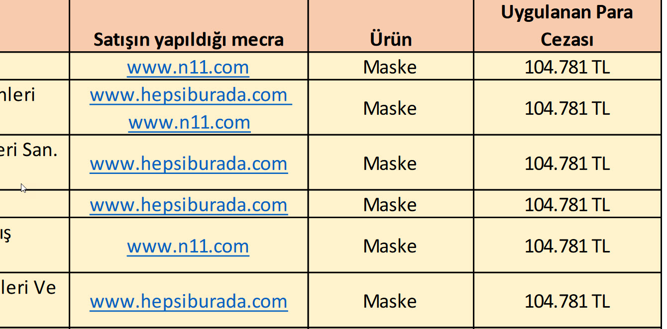 Ticaret Bakanlığı internet sitesi üzerinden yaptığı açıklamada, bu firmaların isimlerini ve aldıkları cezaları duyurdu.
