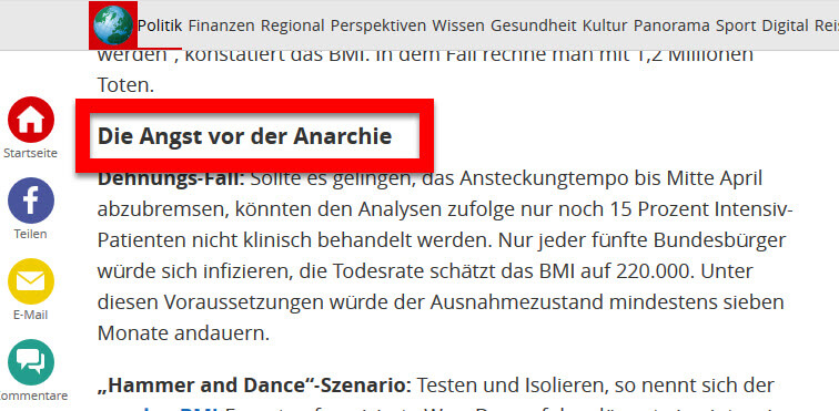 Uzmanlar böylesi bir kötü senaryonun önüne geçilebilmesi için daha sert tedbirlerin alınması gerektiğini bildirdi. Toplumun dayanma gücünü kontrol altına alabilmek için en kotu senaryo üzerinden tedbirlerin alınması gerektiği bildirildi. Olası en kotu senaryoya göre Almanya nüfusunun %70’nin hastalanabileceği ki, bu 60 milyona yakın insan demektir. Ve bunların %2’den fazlası, yani 1 milyondan fazla insanın hayatını kaybetmesi demektir.