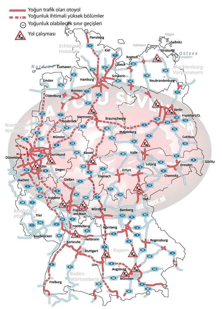 Bu hafta sonu, birçok otoyollarda trafik yoğunluğu bekleniyor. Berlin, Brandenburg, Hamburg, Kuzey Ren-Vestfalya ve Schleswig-Holstein, Mecklenburg-Pomerania’dan ikinci tatil dalgası başlıyor. Deniz istikameti veya güneyde İskandinavya’dan, özellikle de okulların zaten kapalı olduğu Danimarka’dan araba tatilcileri yollarda.