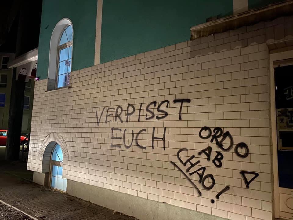 Almanya‘nın Gelsenkirchen kentindeki caminin duvarına dün gece kimliği belirsiz kişilerce ırkçı ifadeler yazıldı.