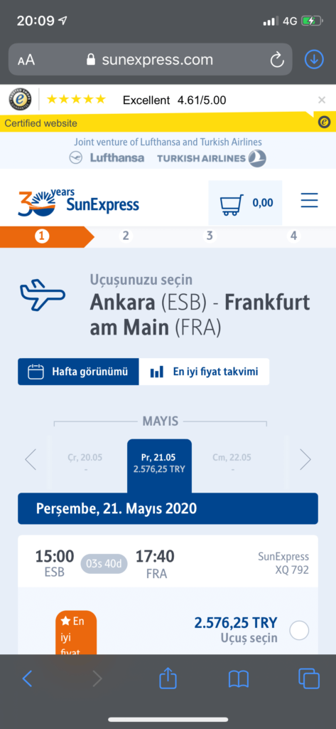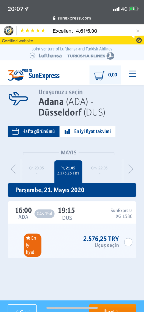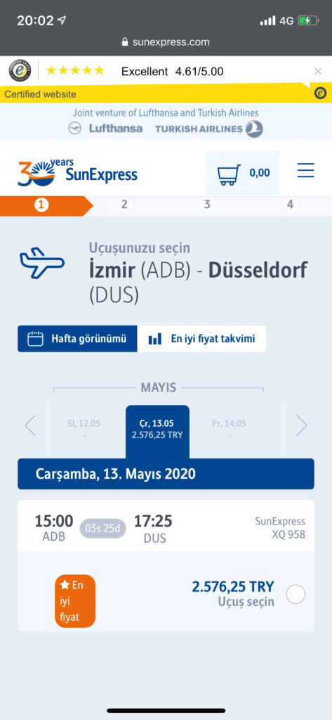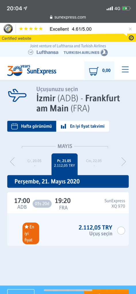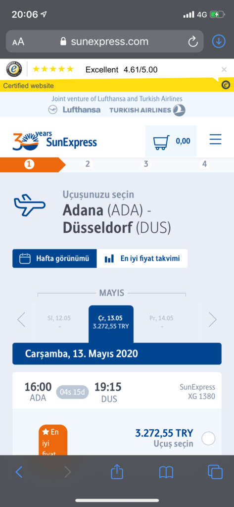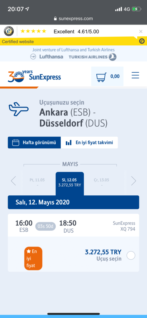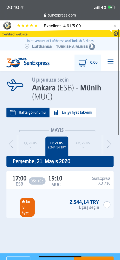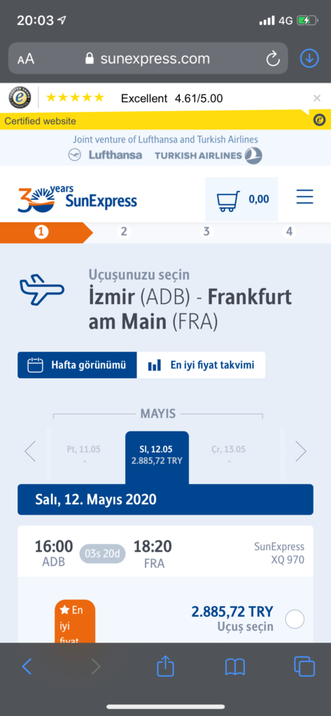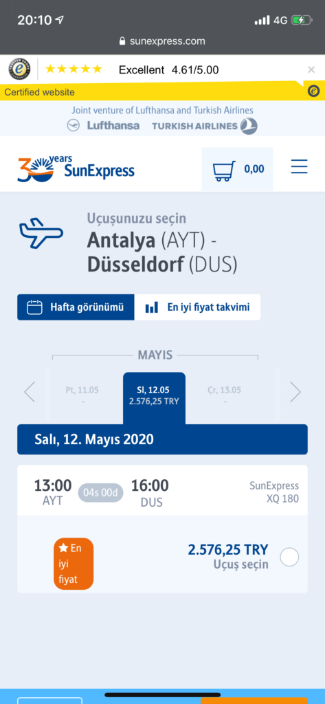 Sınırlı sayıda da olsa SunExpress sitesinden isteyenler bilet bulabiliyor. İzmir, Antalya, Adana ve Ankara çıkışlı uçuşlar için Mayıs ayı içerisinde değişik tarihlerde uçuşlar düzenleniyor. Bilindiği gibi SunExpress Nisan ayında da tahliye uçuşları düzenlemişti.
