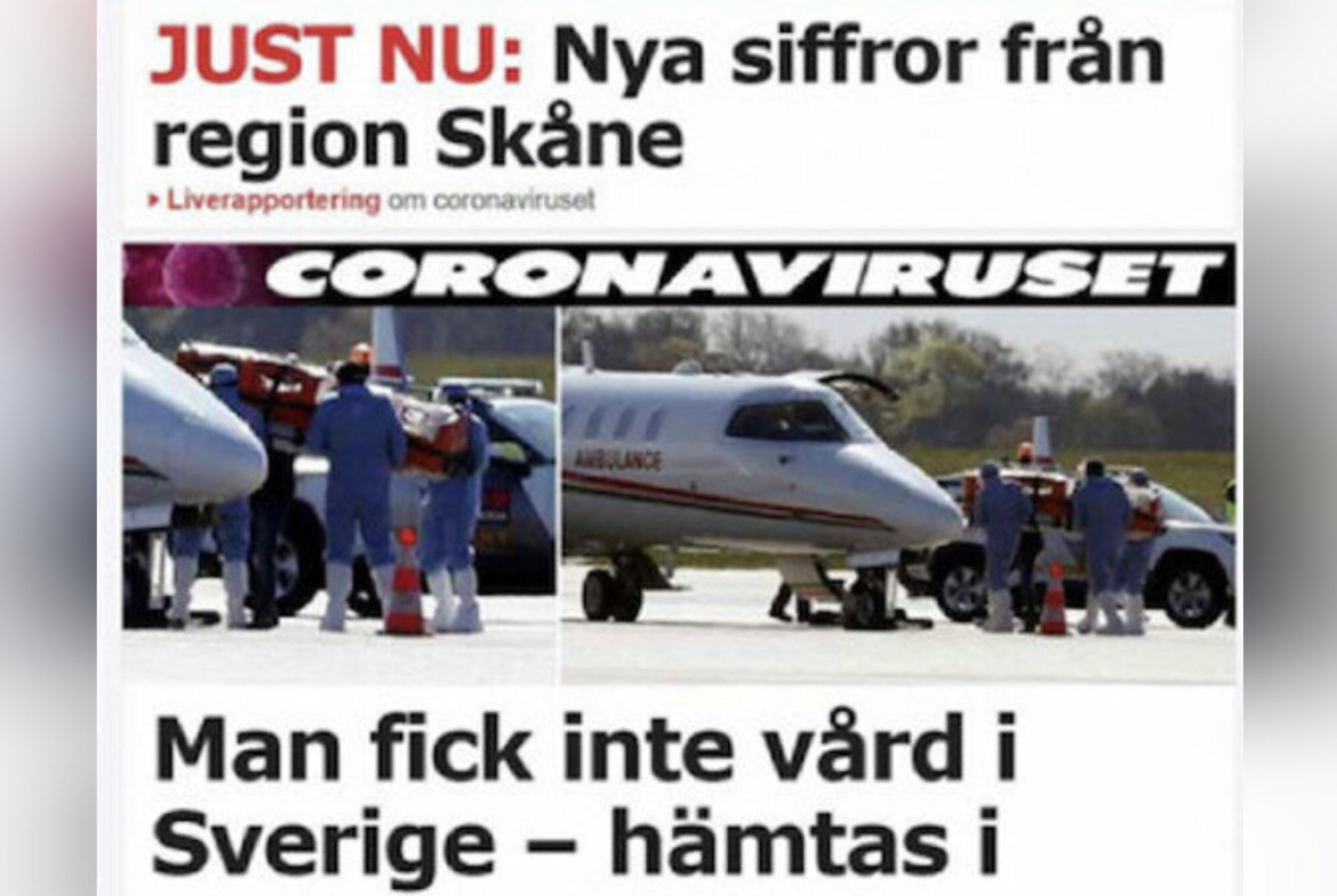 İsveç’in Malmö kentinde Kovid-19 testi pozitif çıkmasına rağmen tedavi edilmeyerek evine gönderilen 47 yaşındaki Emrullah Gülüşken’in, Türkiye Sağlık Bakanlığı’nın ambulans uçağıyla Türkiye’ye getirilmesi İsveç basınında büyük ilgi gördü.